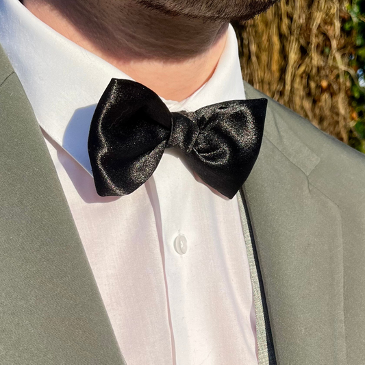Elegant Silky Black Double-Layer Pre-tied Bow Tie