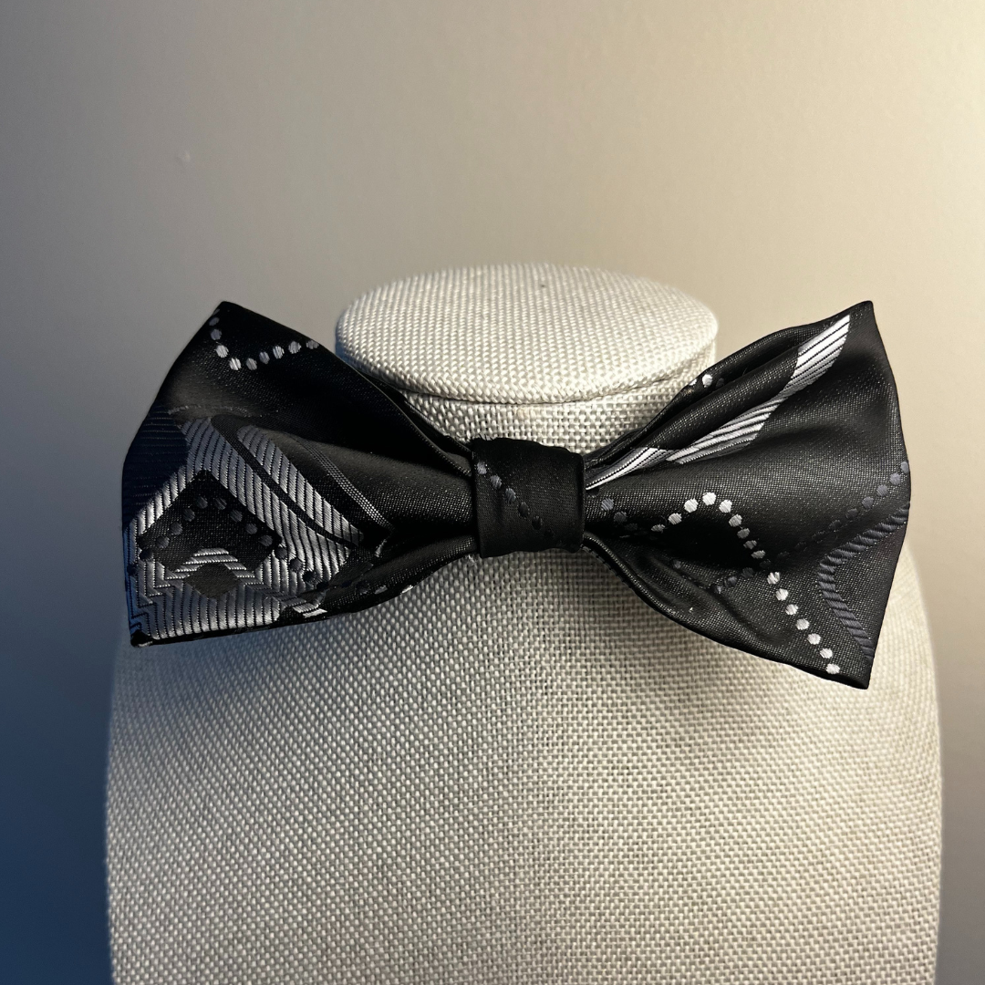 Faites une déclaration audacieuse avec le nœud papillon Cillian, doté d'une base noire élégante avec des motifs géométriques argentés et gris complexes. Ce design sophistiqué allie élégance moderne et une touche de style d'inspiration irlandaise, parfait pour les événements officiels ou pour ajouter une touche d'originalité à votre tenue de soirée. Le nœud papillon Cillian respire la confiance et le style, ce qui en fait un choix idéal pour ceux qui apprécient les accessoires raffinés et contemporains avec une touche unique.