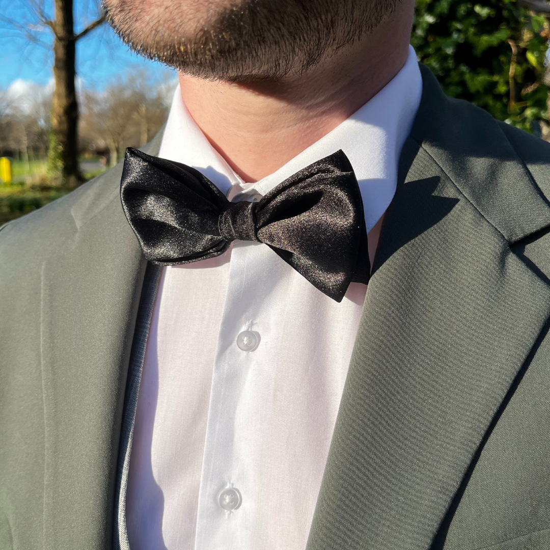 Elegant Silky Black Double-Layer Pre-tied Bow Tie